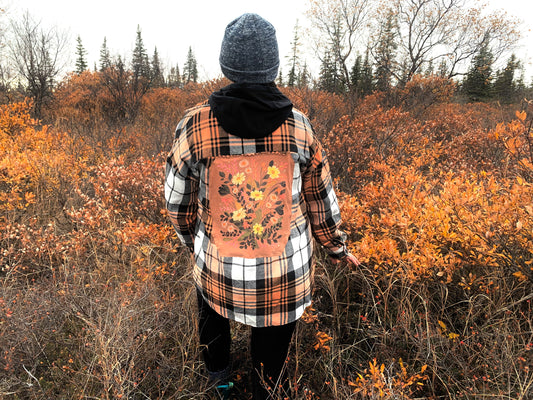 Sold outBURT ORANGE FLANNEL FLOWER BACK